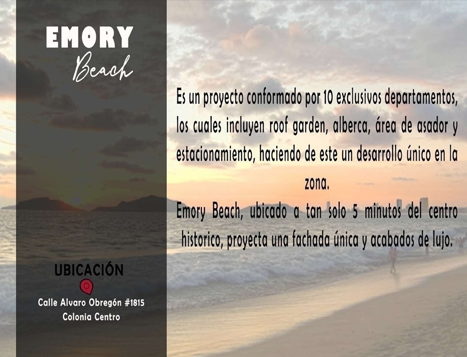 PROYECTO VERTICAL CONFORMADO POR 10 ÚNICOS Y EXCLUSIVOS DEPARTAMENTOS, CON UNA EXCELENTE UBICACION DENTRO DEL PUERTO DE MAZATLAN, A 5 MINUTOS CENTRO HISTÓRICO, PLAYAS, RESTAURANTES, TIENDAS COMERCIALES Y SUPERMERCADOS.
