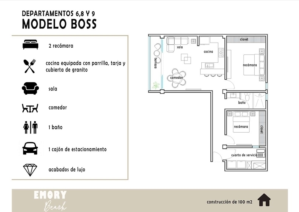 MODELO BOSS (DEPARTAMENTOS 6, 8 Y 9) $ 3,750,000.00 ( NIVEL 2)