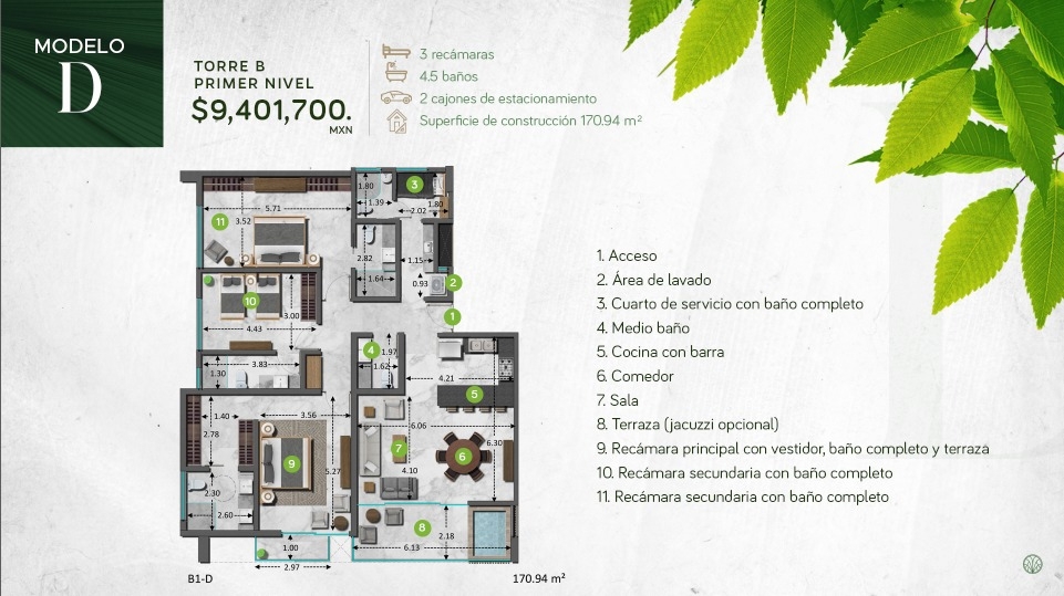 Superficie de construcción 170.94 m