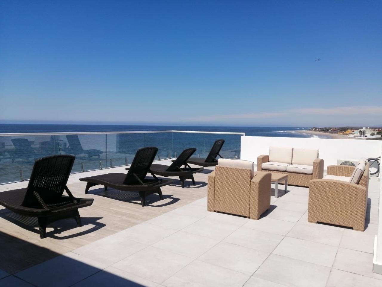 - Amplio balcón con vista al mar y comedor exterior para disfrutar espectaculares atardeceres