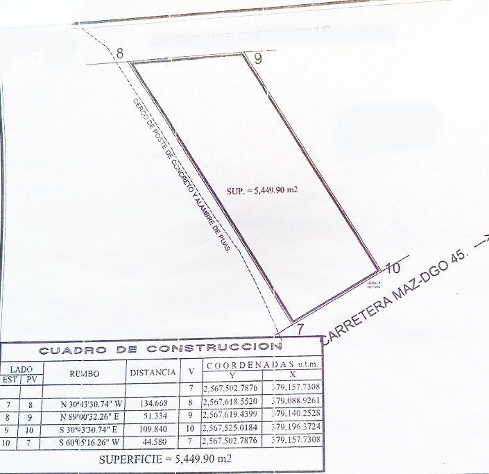 5,449.90 m2 a pie de carretera con agua y luz.