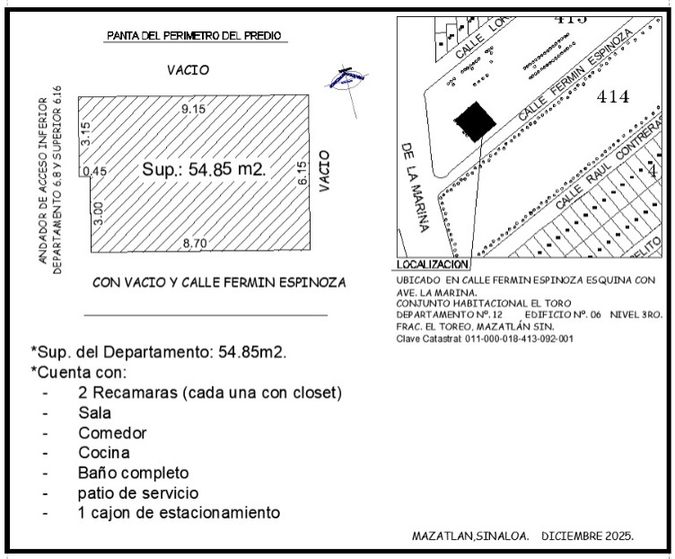 Fermín Espinoza, Edif.6, Dpto.12, El Toreo, El Toreo, Mazatlán, Sinaloa